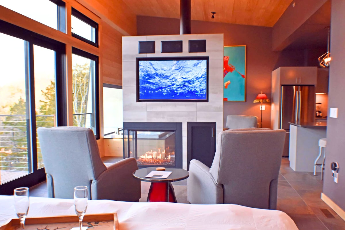 De to sky-suites er våre største, mest luksuriøse og moderne overnattingssteder med den ultimate utsikten over Beaver Lake. Med hengende terrasser ved innsjøen med bålbord, dampskysere, boblebad med utsikt over innsjøen, gjennomsiktige peiser og moderne underholdningssentre, vil disse enhetene sette bakteppet for en av dine beste ferieopplevelser noensinne.