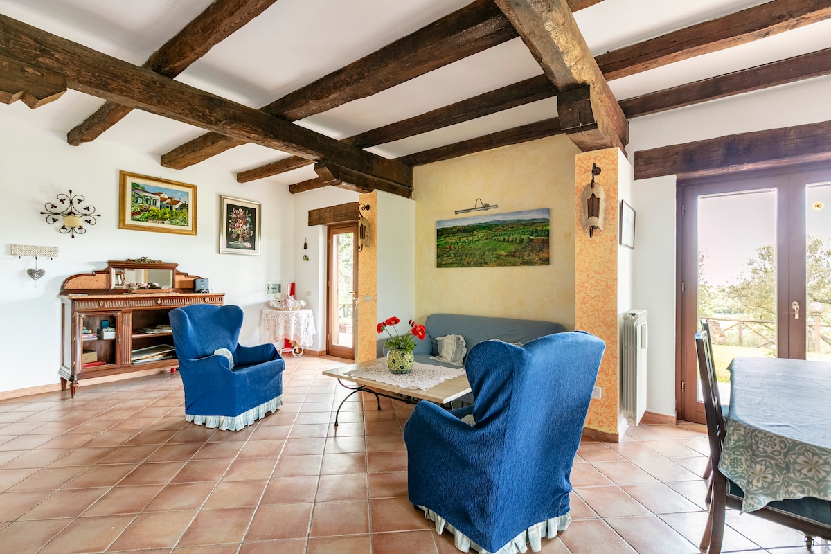 Slapp av med hele familien i dette rolige overnattingsstedet. Podere Muracciolo, nedsenket i Toscania, gir mulighet til å slappe av takket være den store hagen og den karakteristiske pergolaen som gir forskjellige farger under alle årstider. Den romslige leiligheten i første etasje, kalt La Vintage, består av en stor stue, to soverom med dobbeltseng, et enkeltrom og et kjøkken, alle innredet med fine møbler som gir en retro sjarm.