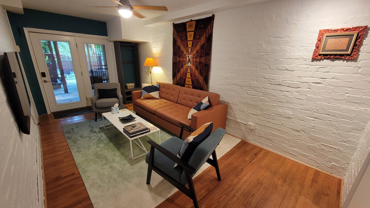 Denne leiligheten på bakkenivå med en rolig terrasse ligger i det historiske Mount Pleasant-nabolaget i Washington DC. Nabolagets hovedgate er fylt med forskjellige restauranter, unike barer, iskrembutikker og et bondemarked på lørdager. Du ligger innenfor gangavstand til sykkelstiene og turstiene i Rock Creek National Park og Smithsonian National Zoo, samt Metro-buss og T-banelinjer som raskt kan koble deg til de ulike DC-attraksjonene.