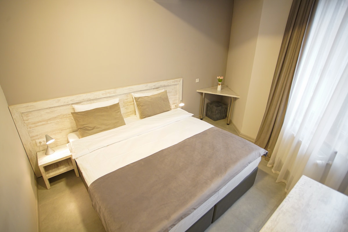 Take an early morning stroll and enjoy Swan Lake near to Freedom Square free from tourists. Wander around the historic streets while the city sleeps, then head back for a morning coffee at this urban-chic place with lightful bedroom.