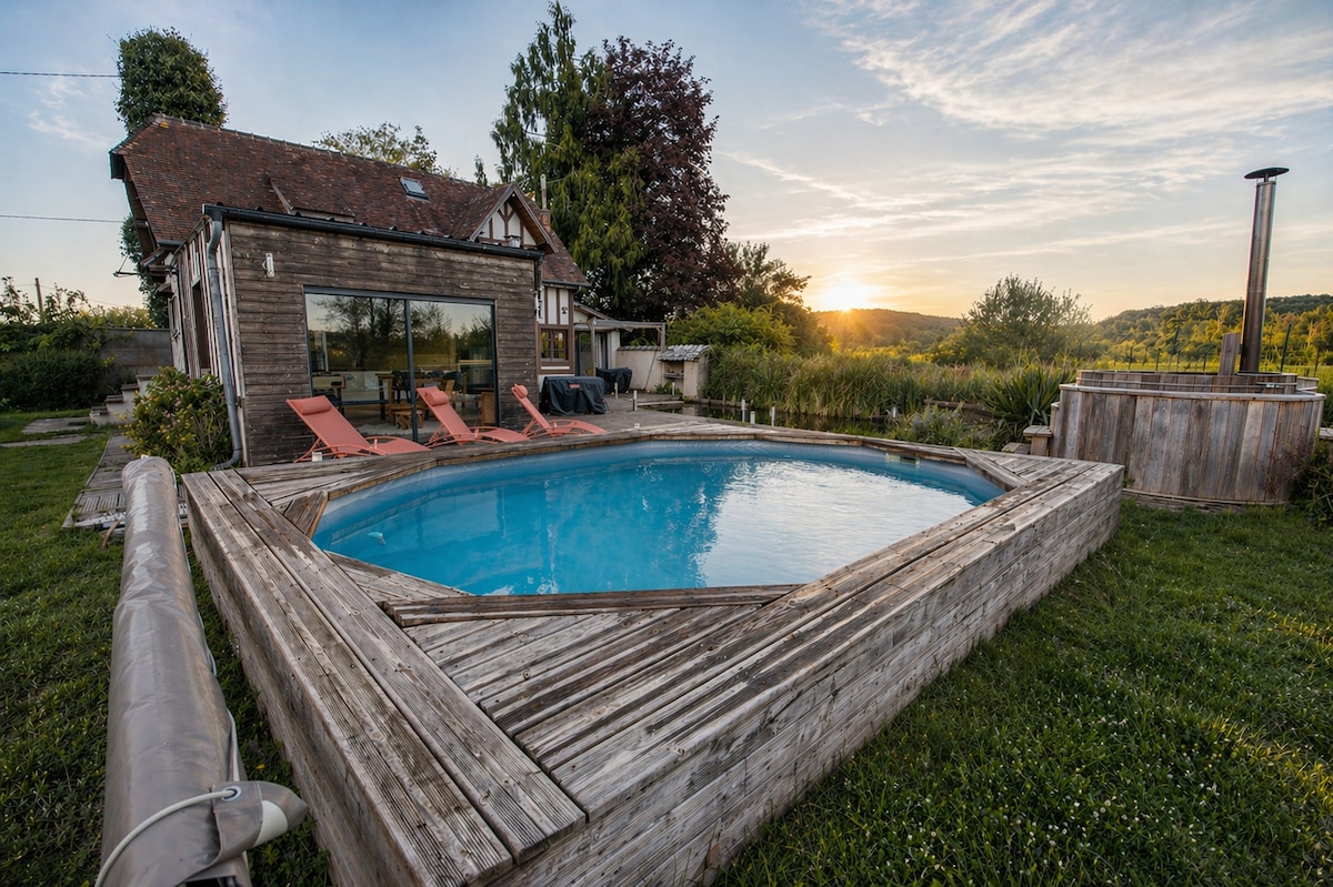 Trenger du en søt og romantisk utflukt? L'Atelier er laget for deg! Et fredelig tilfluktssted i en skogkledd park på én hektar, bare noen skritt fra Giverny og i nærheten av alle fasiliteter. Hjemmet vårt tilbyr all den komforten du trenger i en atmosfære fra begynnelsen av 1900-tallet. Slapp av med årstidene: en koselig vedovn om vinteren, et basseng om sommeren (+ plancha grill/solsenger). Direkte tilgang til skogsløyper. Vi deler gjerne alle våre lokale favorittsteder! Hvis du er ute etter et tidløst tilfluktssted, er dette stedet for deg!
