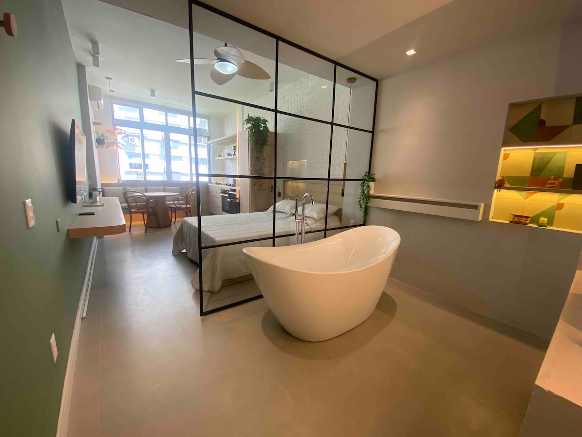 Slapp av i dette koselige, nyrenoverte og stilige rommet. Loftsleiligheten Arpoador er et 24 m2 stort rom, planlagt av den talentfulle arkitekten Luciana Ventura. Et godt utnyttet sted for gjestene å ha all den komforten og praktiskheten de fortjener. Loftsjiktet ligger i nærheten av Hotel Fasano, 50 m fra Arpoador-stranden og den berømte steinen, hvor du kan nyte den vakreste solnedgangen i byen. Og når du går ca. 300 meter, i motsatt retning av Arpoador, kommer du til den populære Copacabana-stranden.