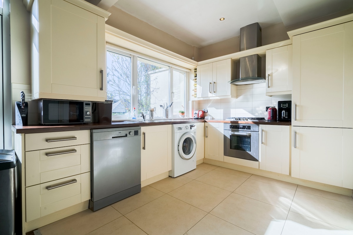 Det sjarmerende hjemmet vårt ligger i et rolig, familievennlig nabolag og er ideelt for det irske eventyret ditt. Bare en ti minutters kjøretur fra flyplassen, i nærheten av Dublin City University og ved siden av Beaumont Hospital. Dublins sentrum ligger 25 minutter unna med buss, med en holdeplass to minutter unna. Fasilitetene inkluderer to queensize-senger, en sovesofa, et komplett bad, et ekstra toalett, en bredskjerm-TV, et fullt utstyrt kjøkken med filtrert vann fra springen og en bakgård. Gratis privat oppkjørsel for to biler er inkludert.