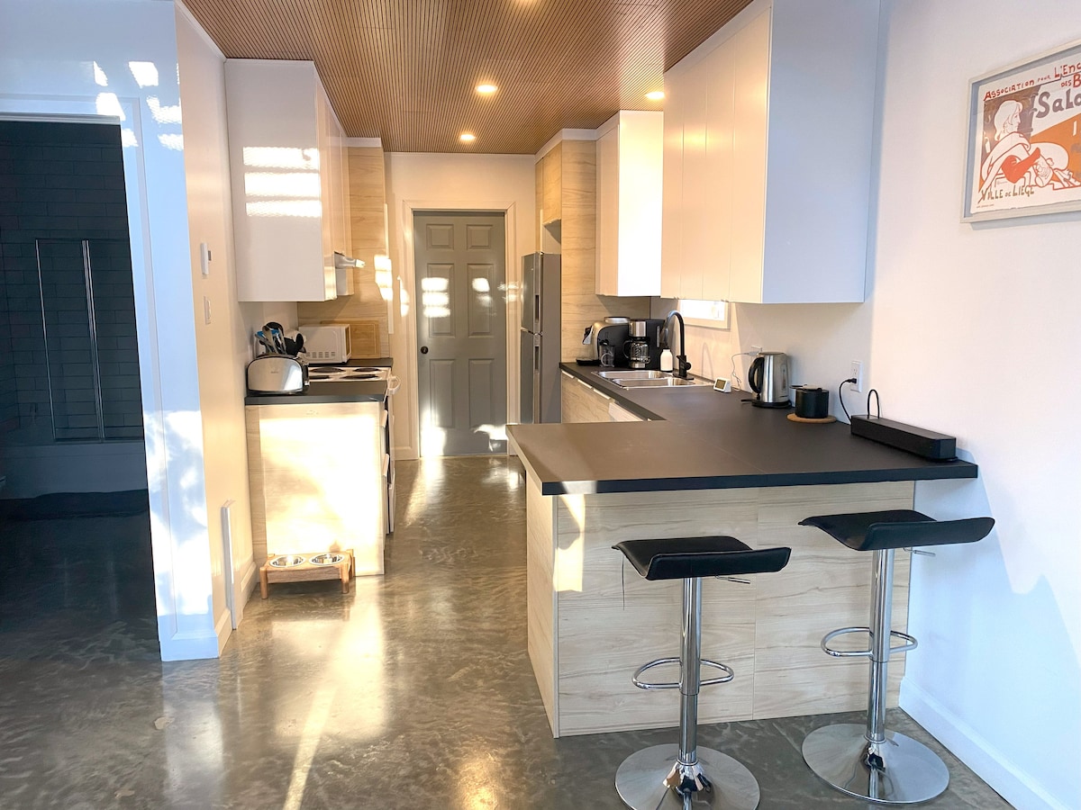 Helt selvstendig privat bolig tilstøtende et hundre år gammelt hus (1880). Boligen ble bygget på stedet for den gamle stallen, med moderne materialer, og inkluderer et komplett kjøkken og bad. Inngangen til boligen deles med inngangen til hovedhuset. Denne boligen ligger på landet, på et stort landområde omgitt av kupert jord, samtidig som den ligger mindre enn 15 minutter fra sentrum av Sherbrooke.