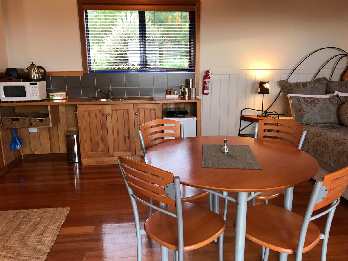 Bedårende, koselige og godt utstyrte hytter. Begge har fantastiske bad; spa- eller regndusj, små tekjøkken med minikjøleskap, mikrobølgeovn, gryter og elektrisk stekepanne. Stort utvalg av te, kaffe og sukker, med en godbit som alltid står igjen i kjøleskapet. Balkongen vår er et nydelig sted å sitte og se på ørnene fra eller en soloppgang/solnedgang. Om natten kan du høre ringhalepungrottene, med sine kjære små pip, mens du beundrer noen av de beste nattehimmelene du noensinne vil se. Du kan se arouraer i nærheten.