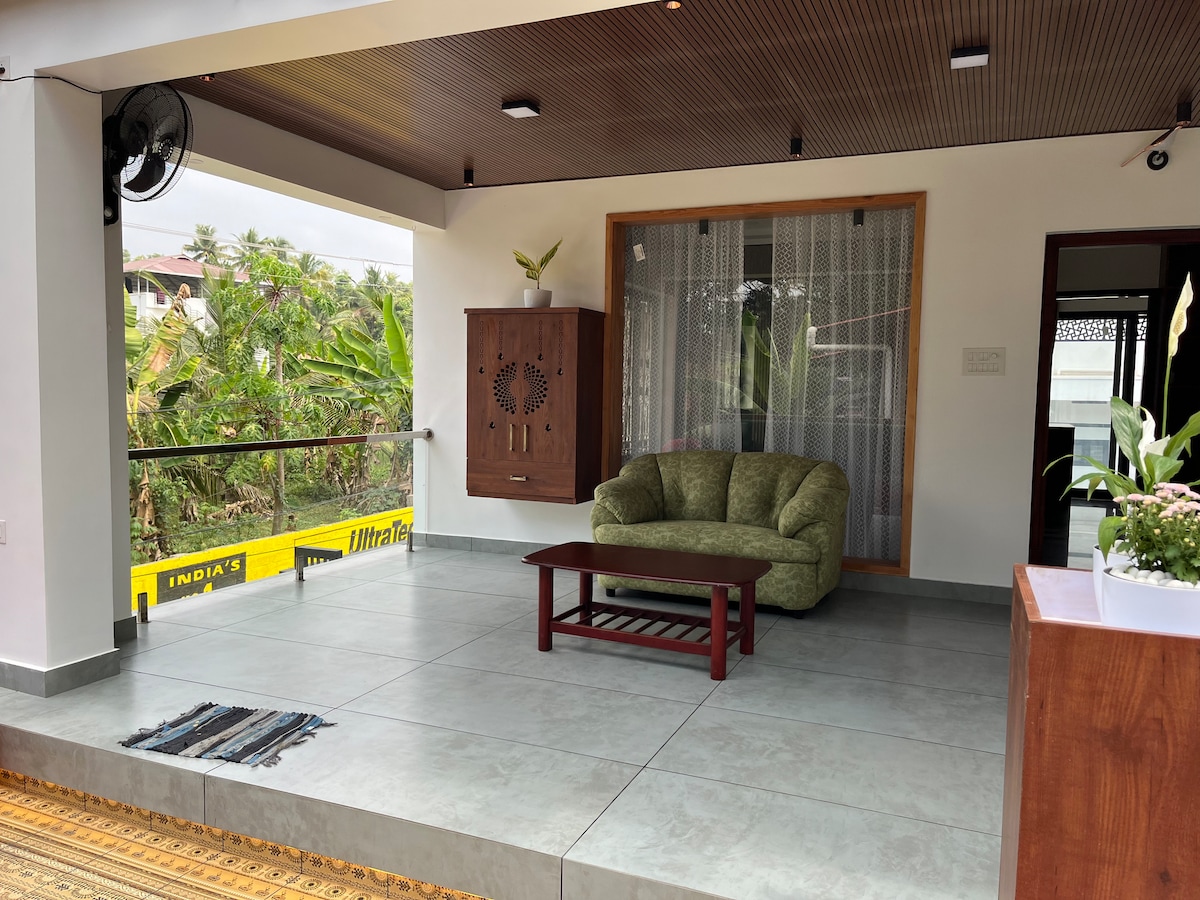Velkommen til Padnamabham, ditt fredelige tilfluktssted i Trivandrum! Bare 5 minutter fra Trivandrum lufthavn og Padmanabha Swamy tempel, og 20 minutter fra Kovalam Beach, er vår fullt møblerte 3 BHK villa ideell for langvarige opphold. Nyt moderne fasiliteter, inkludert en koselig stue med en 55-tommers TV, høyhastighets Wi-Fi og et fullt utstyrt kjøkken. Slapp av på den romslige balkongen omgitt av grønne planter, perfekt for å slappe av etter å ha utforsket Trivandrums beste attraksjoner.