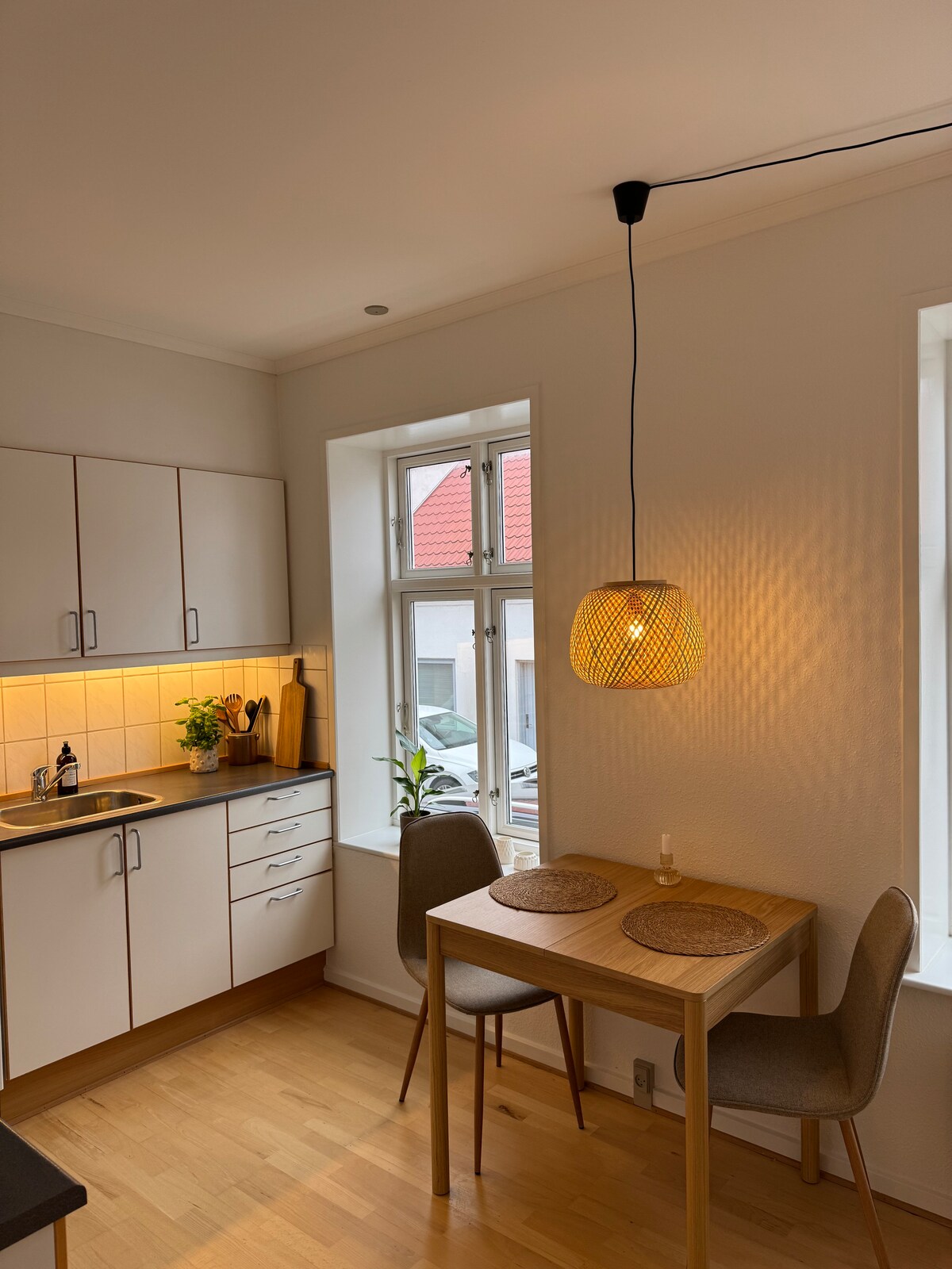 Sentralt og perfekt for arbeid eller reise. Nyt en stor seng med rent sengetøy, et fullt utstyrt kjøkken med basisvarer og gratis kaffe, te og godteri. Raskt trådløst nettverk gjør det enkelt å jobbe hjemmefra eller strømme. Sikker parkering er tilgjengelig bak bygningen mot et lite gebyr. Stedet er dekorert med friske planter og blomster, noe som skaper en avslappende atmosfære bare noen skritt fra butikker, kaféer og byens attraksjoner.
