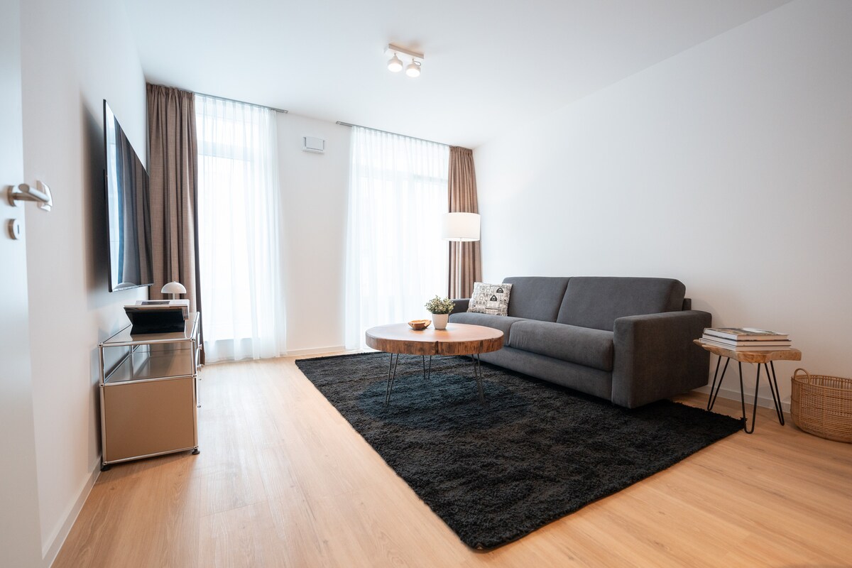 Vi ønsker deg velkommen til Strietpartment! I en tidligere bankfilial finner du to romslige soverom med queensize-senger og nok plass til bagasjen din. Den romslige stuen og spiseplassen suppleres av garderoben i inngangspartiet og et kontorhjørne. Kjøkkenet tilbyr alt du trenger, samt en liten kaffe- og tebar, noe som gjør dagen din enklere. På badet finner du en stor dusj med regnvannsdusj og et håndkle varmere!