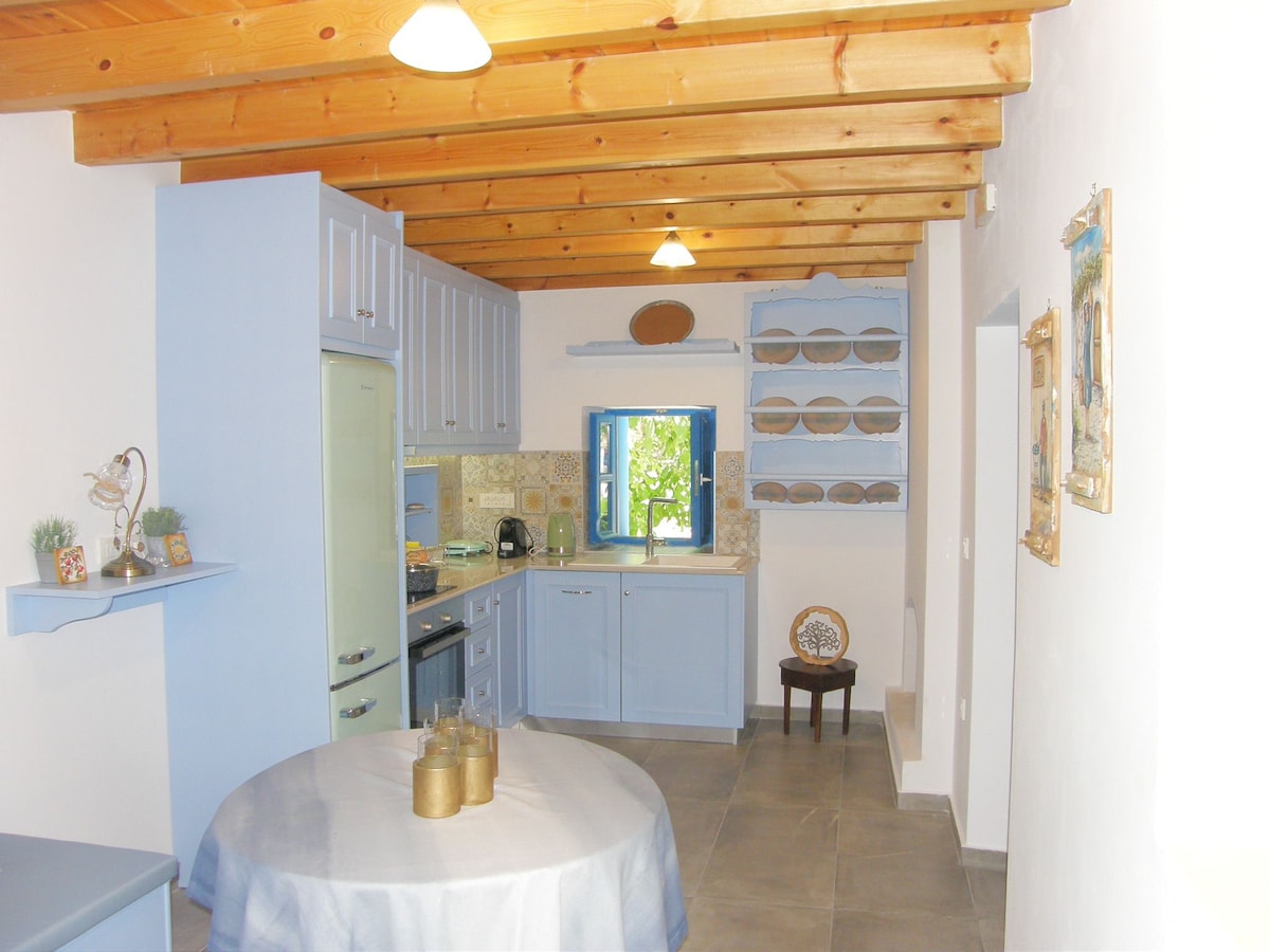 Et hus fullt av tradisjon, glamour og rik historie! Opplev magien i fjellet, i et tradisjonelt hus med uforlignelig sjarm! Boligen på 95 kvm er ideell for de som elsker ro, natur, gåturer. Den har utsikt over fjellet og havet, privat parkering, grill, vedovn, boblebad med kapasitet for 5 personer og gårdsplasser på totalt 550 kvm. Den nærmeste stranden i Tigaki-området ligger 9 minutter fra overnattingsstedet med bil.