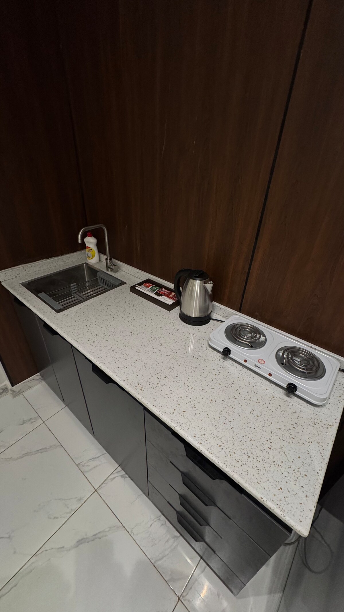 Dette stilige utleiestedet passer perfekt for familieturer Første etasje . Uavhengig inngang. En liten gårdsplass utendørs med vakker sitteplass, rolige farger, moderne og elegant innredning, vakre lys. Separat hovedsoveromssuite som består av ett soverom, salong og kaffehjørne. Rom med to senger Det er et stort råd som er isolert fra soveavdelingen der gjesten kan ta imot besøkende. Stedet er klart for daglig og ukentlig leie Oppmerksomhet på de fineste detaljene som ( legging av en madrassbeskyttelse og en putebeskyttelse og stadig endre den) Det er automatisk vaskemaskin. Det er tjenester i nærheten av ham .