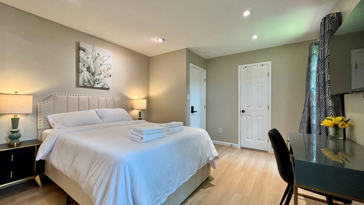 Pristine 1BR, kingsize-seng, boblebad, nær IAD