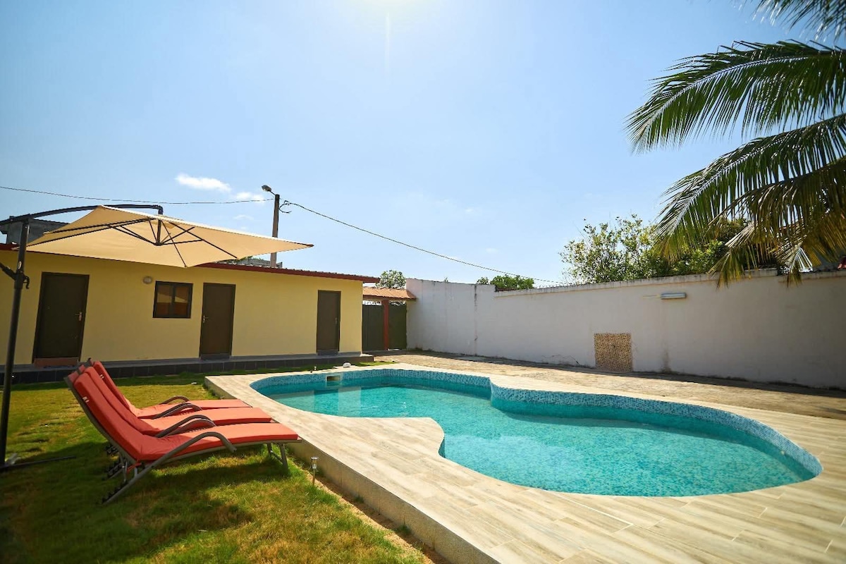Villa med privat basseng i Assinie, ideell for ferie med familie eller venner. Denne moderne og sikre villaen har store lyse områder, en komfortabel stue, spisestue, overbygd terrasse og tropisk hage. Nyt roen, nærheten til stranden og lagunen for et avslappende, luksuriøst og velværeopphold på den ivorianske kysten.