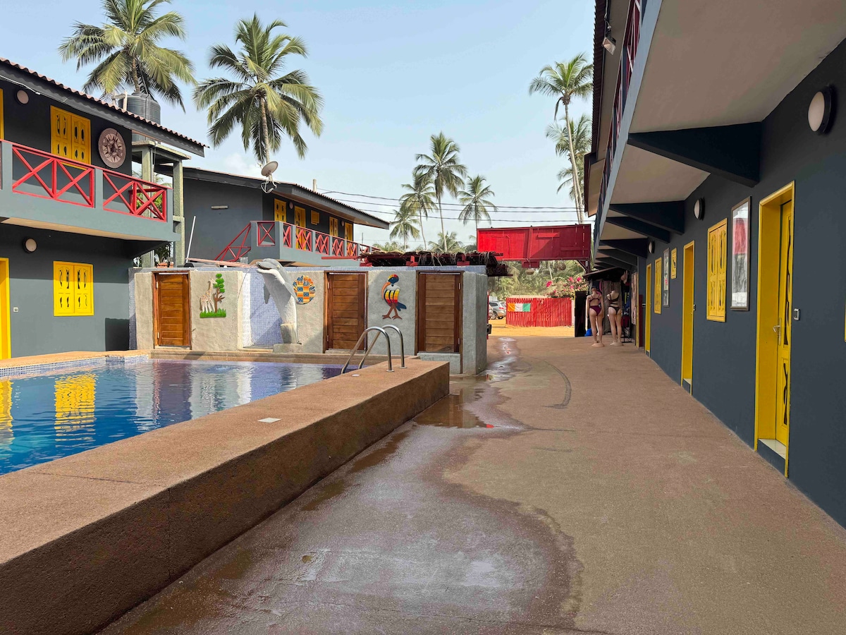 Velkommen til vårt lyse og moderne studio i hjertet av Assinie Mafia. Studioet vårt er ideelt for gjester som ser etter komfort og bekvemmelighet, og har en komfortabel seng, utstyrt tekjøkken og moderne bad. Nyt kabel-TV, gratis trådløst nettverk og sentral beliggenhet som gjør det enkelt å komme seg til lokale attraksjoner. Bestill nå for en hyggelig opplevelse på KIA ORA LODGE!