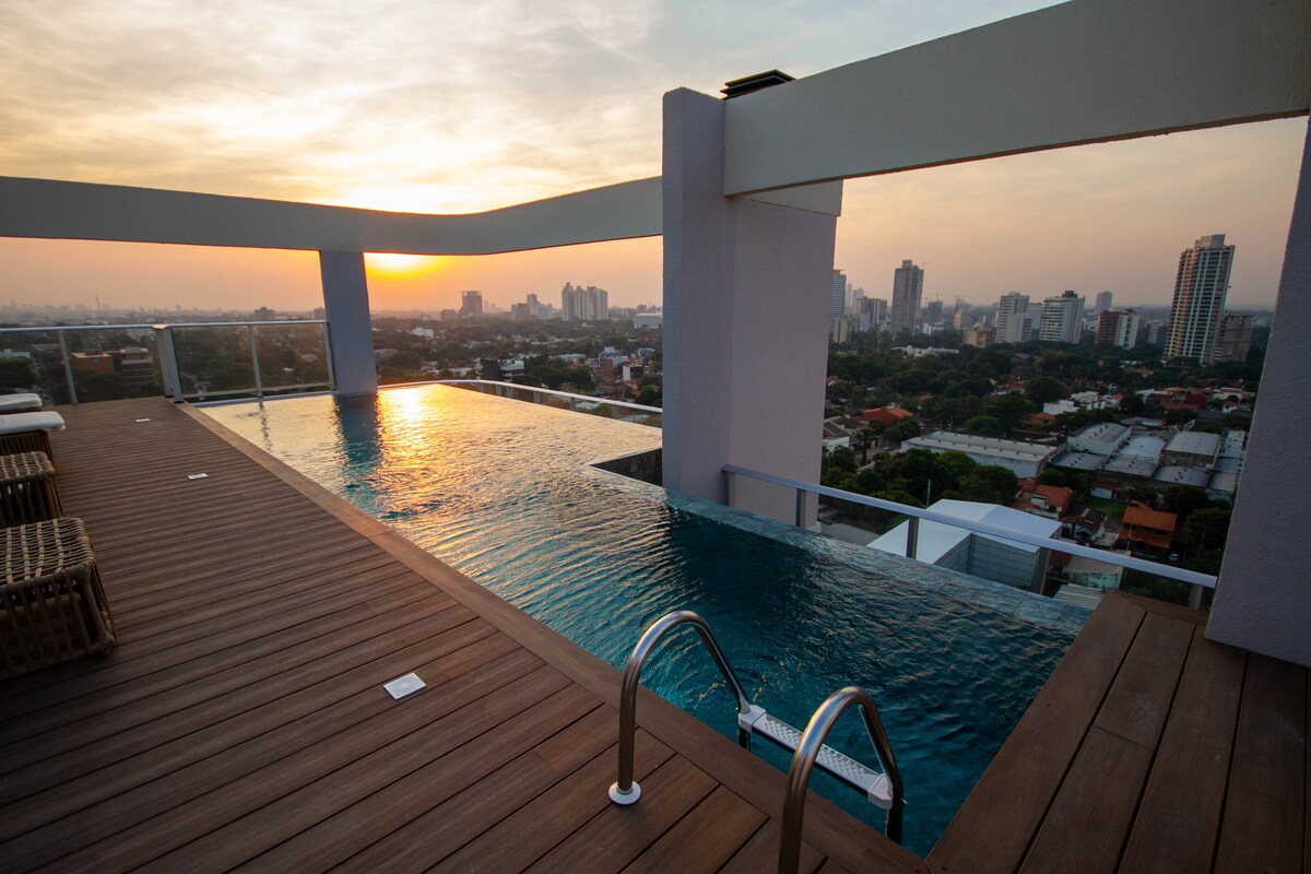 Nyt en stilig opplevelse på dette strategisk beliggende overnattingsstedet i det mest eksklusive området i Asunción, bare tre kvartaler fra Del Sol-shopping. Slapp av i våre unikt designede fasiliteter, svømmebassenget, jacuzzien, spaet og badstuen. Du vil kunne fortsette treningsrutinen din i vårt moderne og komfortable treningsstudio og oppleve et annet opphold i en fullt utstyrt leilighet med kjøkken, sengetøy og privat carport. Drømmeopplevelse med overnatting starter her!