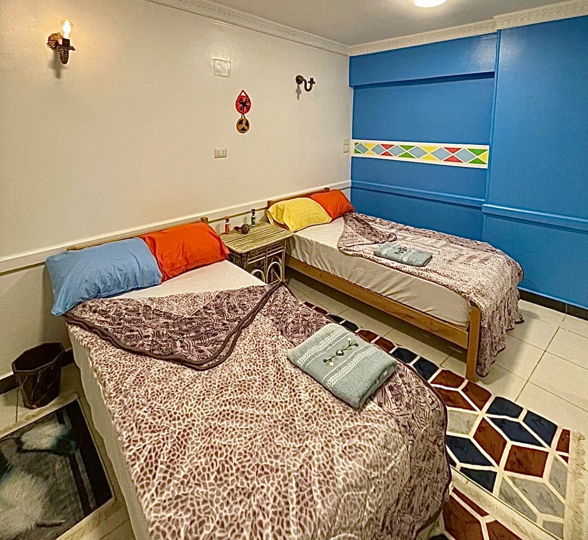 Velkommen til NEFERTARI, hvor nubisk kultur og liv blandes sømløst. Bygget med kjærlighet og hardt arbeid, som ligger ti minutter unna sentrum. Når du går inn i rommet vårt, vil du oppdage en innbydende atmosfære som gjenspeiler varmen i lokalsamfunnet. Huset har 2 soverom, hver møblert med 2 enkeltsenger kledd i dobbeltlaken, noe som sikrer en komfortabel natts søvn. Hele stedet har klimaanlegg, slik at du kan unnslippe den egyptiske solen og nyte et rolig tilfluktssted.