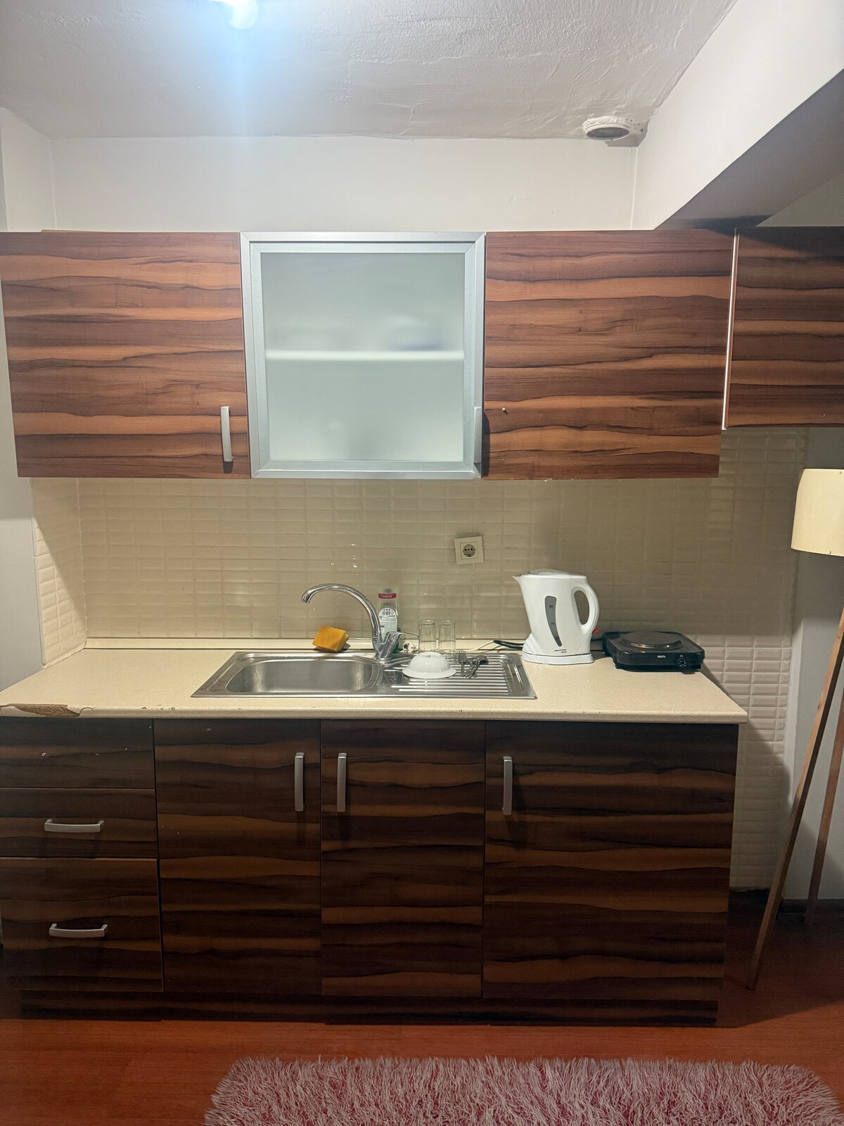 Når du ser på utleiestedene, kan du se tre av den samme leiligheten fordi vi brukte de samme møbelsettene da vi designet, og det er forskjeller i leilighetene. Prisene varierer fordi de er en pluss en og to pluss en, og beliggenheten er veldig sentral. T-bane, Marmaray, offentlig transport og kjøpesentre ligger innenfor gangavstand. Viktig merknad: Ingen kan gå inn i leiligheten bortsett fra det angitte antallet personer.