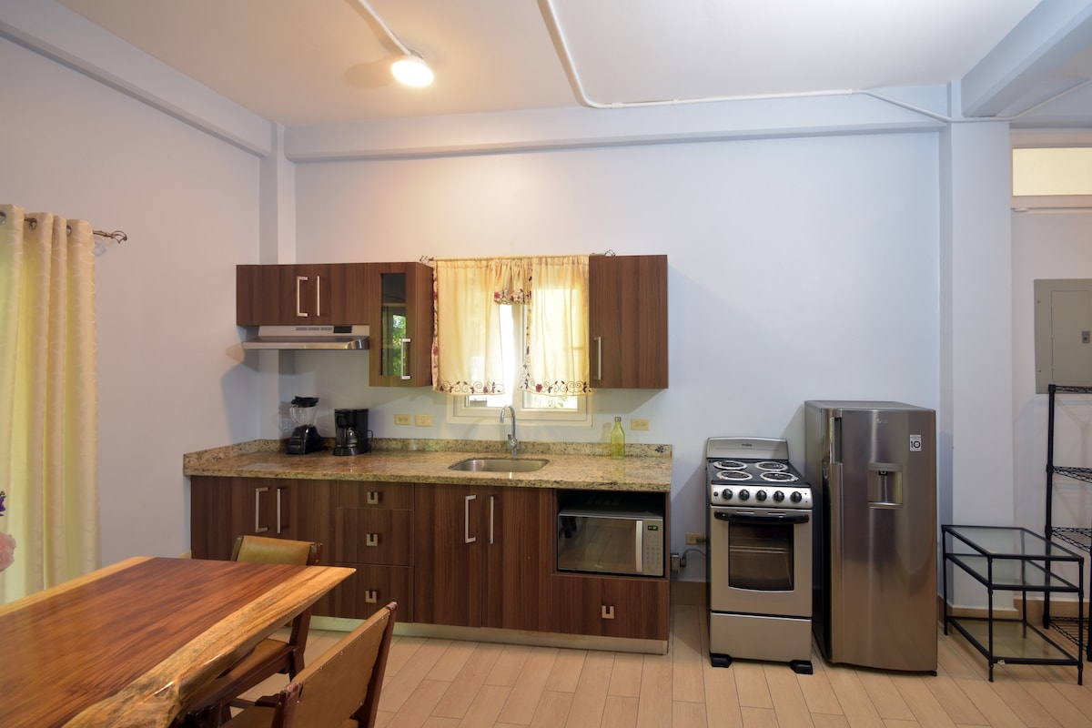 Hyggelig leilighet i første etasje i et privat kompleks med privat basseng, omgitt av tropiske omgivelser og bare 20 meter fra stranden. Ideelt for grupper på fire personer, med kapasitet til å ta imot opptil seks gjester, inkludert barn. Inkluderer daglig rengjøringstjeneste og har en reservegenerator for å sikre vannforsyning, belysning og nødvendige stikkontakter. Et perfekt miljø for å koble av og nyte havet.