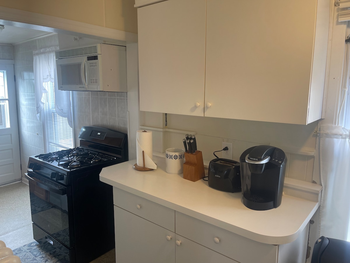Koselig hjem med 4 soverom og 1 bad ligger bare noen få kvartaler fra stranden, strandpromenaden, butikker og kasinoer! Slapp av på verandaen eller grill på baksiden. Den inngjerdede bakgården tilbyr en avslappende bakdekk med utendørs-TV, parkering for to biler + ekstra plass til corn hole! Inne kan du nyte sentralvarme/kjøling, vaskemaskin/tørketrommel og et spisebord for seks – perfekt for måltider eller spillkvelder. Enten du er her for stranddager, kasinomoro eller en konferanse, tilbyr dette hjemmet et komfortabelt opphold i hjertet av Atlantic City!