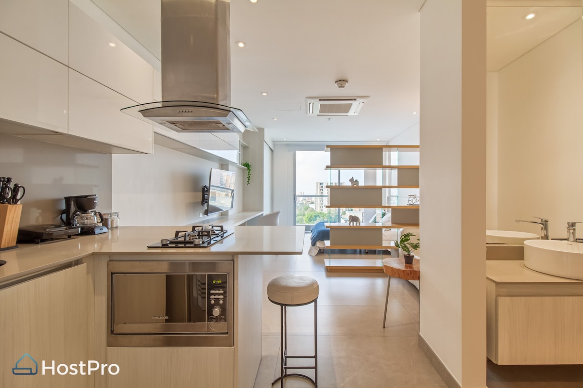 Sjarmerende leilighetssuite, ny, moderne og automatisert, som ligger i et av de beste områdene i byen, Nuevo Horizonte-nabolaget, i nærheten av Sagrado Corazon-parken. Studioleiligheten har alle bekvemmeligheter for et hyggelig opphold, enten det er langt eller kort, for turisme eller arbeid, raskt 900 Mbps trådløst nettverk. Veldig nær byens beste restauranter, kjøpesentre, parker, barer og rumba-steder. Ideelt for ledere som ønsker komfort.