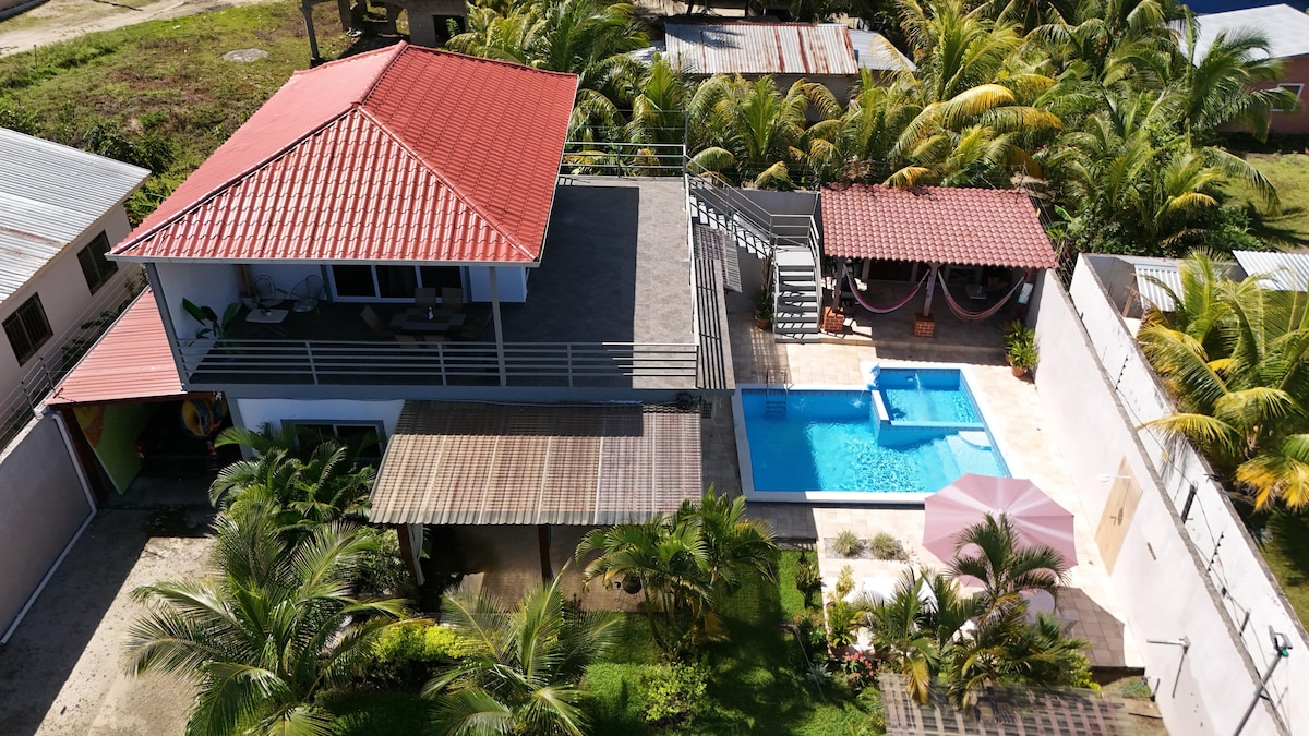 Hele villaen ligger i andre etasje, omgitt av tropiske omgivelser og bare 20 meter fra stranden. Perfekt for å slappe av og nyte sammen med familie eller venner. Beliggende i et privat kompleks med et eksklusivt basseng, grillområde og ekstra tilgang til det felles bassenget. Et ideelt miljø for å koble fra og slappe av ved havet. Inkluderer daglig rengjøring, har plass til opptil ti gjester, inkludert barn, og har en generator som leverer vann, belysning og noen stikkontakter.