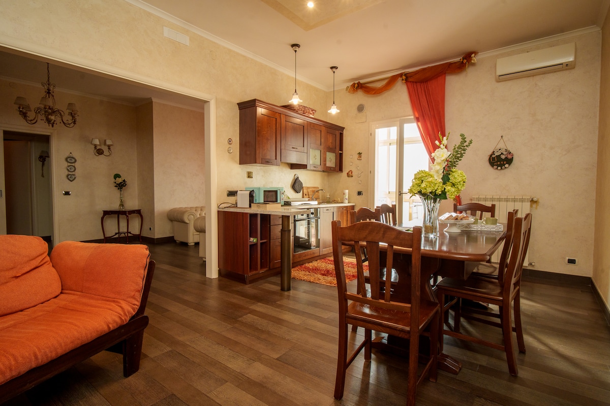 Scegliere il nostro appartamento significa vivere un'esperienza unica e privata. A differenza di un "affitta camere", offriamo un alloggio ad uso esclusivo, due camere una matrimoniale e una con due letti singoli, un bagno con doccia, una zona living e cucina complet attrezzata. Wi-Fi free, TV, aria condizionata e una veranda per fumatori con angolo lavanderia (lavatrice, ferro e asse da stiro) sono inclusi. Il nostro appartamento è la scelta ideale per chi cerca comfort, privacy e indipendenza.