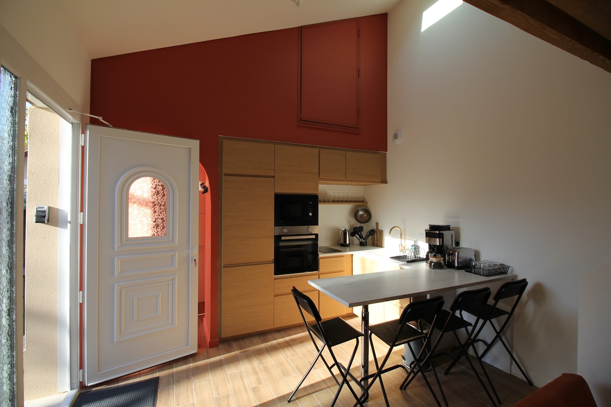 Kom og tilbring en uforglemmelig Netflix og avslappet kveld for et par eller med venner i en sjarmerende fullstendig renovert T2 som ligger på nivå -1* av hovedboligen vår. Den er fullt utstyrt (Nespresso-kaffetrakter, videoprojektor, TV, kjøkken). Alt sengetøy (sengetøy, håndklær) følger med. Plass til opptil 4 personer: 1 dobbeltseng på 160 x 200 cm + sovesofa. Røyking er ikke tillatt på overnattingsstedet. Fester og støy er strengt forbudt! * Semi-buried kjeller