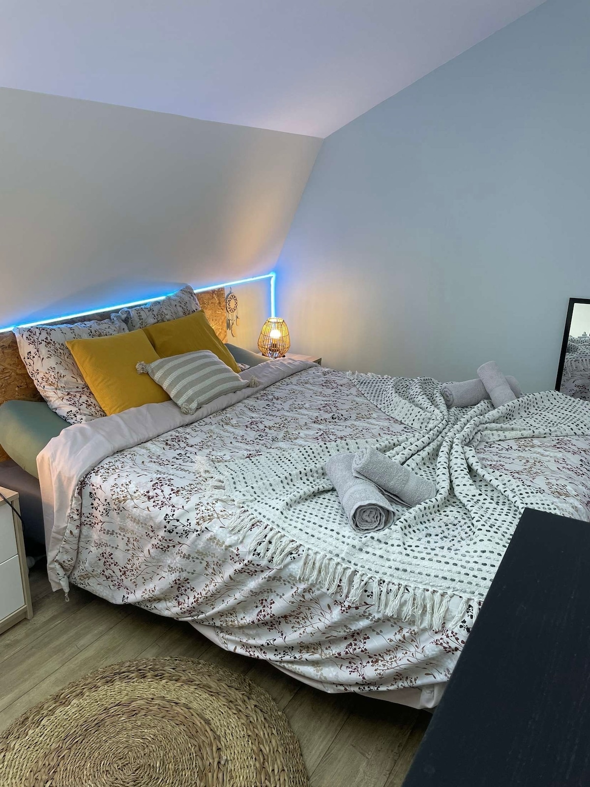 Velkommen til leiligheten vår, ideelt plassert 6 minutter med bil fra sentrum av Valenciennes og i umiddelbar nærhet av en sjarmerende offentlig hage. Denne koselige boligen er perfekt for par eller reisende som ønsker å utforske byen, samtidig som de nyter en grønn og avslappende atmosfære. ☘️🚨NYHET: Nyt terrassen vår i sommer.