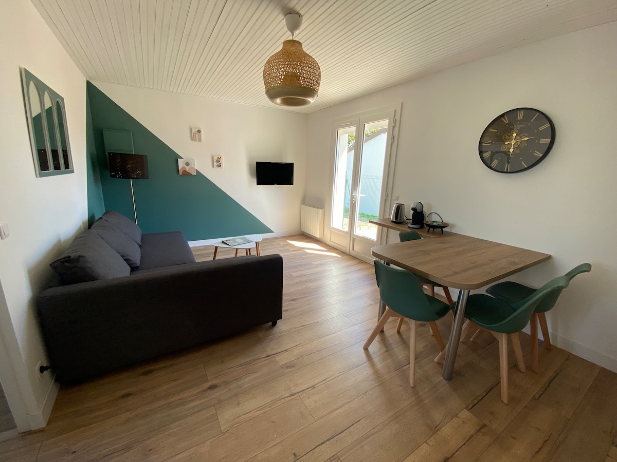 5 minutter fra sentrum av Poitiers og ligger i et rolig område, denne leiligheten for 2 personer er ideell for et avslappende opphold. Stue med TV og Netflix, bord med løftbart brett, utstyrt kjøkken, bad med dusj. Privat hage uten overforliggende hus, elegante hagemøbler og oppvarmet boblebad med utendørs dusj er de store fordelene med denne sjarmerende leiligheten. Enten dere er et par eller venner, vil den la dere oppdage Poitiers-regionen.