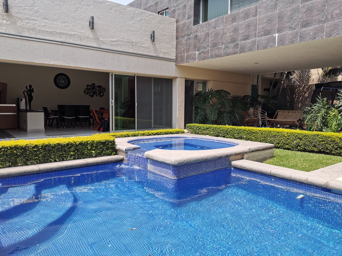 Nyt oppholdet ditt i en luksuriøs bolig, som ligger i den gylne sonen i Cuernavaca. Flott beliggenhet, supermarkeder, kjøpesentre og restauranter i nærheten. Utrolig finish, svømmebasseng og jacuzzi på 32 grader med varmepumpe, bar med grill og TV i hagen, TV-rom inne med 86'' skjerm og Onkyo-lyd for å nyte en ettermiddag med filmer. Det har aircondition, samt eget bad på alle soverom, samt bad med badekar på soverommet.