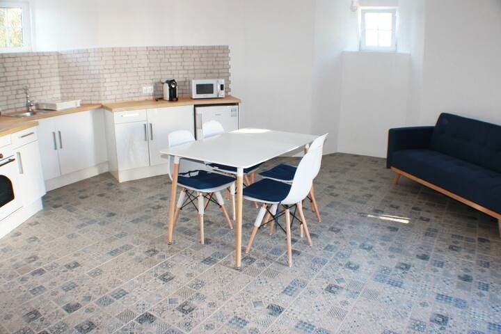 Kom i kontakt med naturen på denne uforglemmelige ferien. De to minihusene våre ligger midt i jordbrukslandskap på en hesteoppdrettsgård 400 meter fra en av de beste surfestrandene i området. Containerenheten er privat, kun for deg. Inngangen er via underrommet. Dette solrommet, samt vaskerom, hage og bakkontor/oppbevaringsplass, deles med den andre enheten (to personer). Det lokale samfunnet vårt tilbyr også en liten lokal strandbar, et pizzasted og et mikrobryggeri og en hamburgerrestaurant.