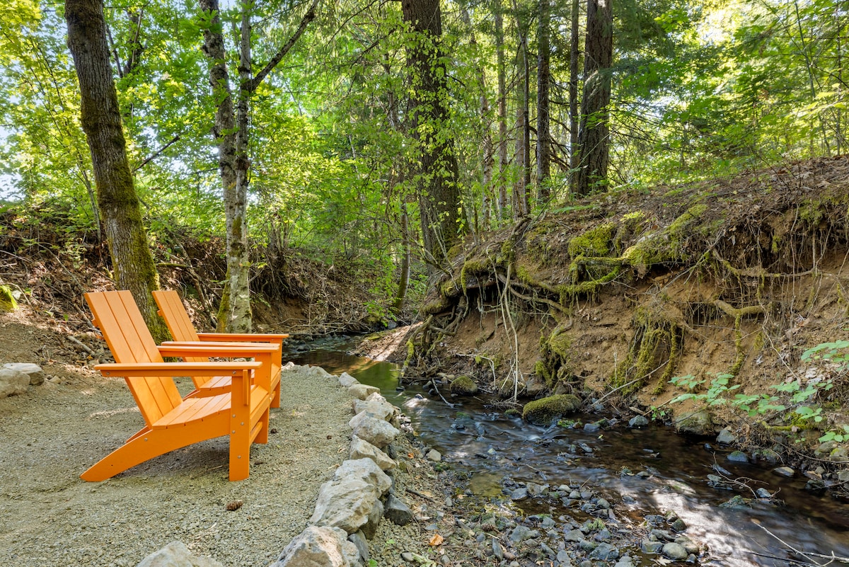 White Salmon River-huset er et vakkert paradis på Wild and Scenic White Salmon River. Boligen ligger på over seks hektar privat, moden skog langs elven, bare 15 minutter fra White Salmon, WA. Dette avsidesliggende tilfluktsstedet er den perfekte basen for rafting- eller Columbia River Gorge-eventyr. Vi jobbet og møttes i raftingfirmaet Wet Planet Whitewater i nærheten. Vi anbefaler på det sterkeste en raftingtur under oppholdet! ***10/1/2023 VI HAR LAGT TIL EN BADESTAMP!!!