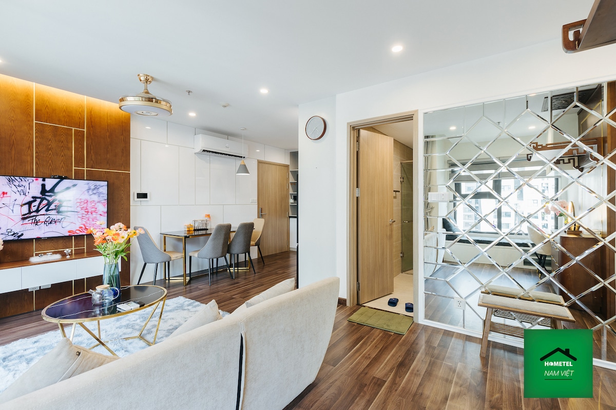 Komfortabel ferie - Privat og gratis vaskemaskin/tørketrommel inkludert! Denne stilig innredede 1BR i Zenpark Tower - VinHomes OceanPark. Det er en helt ny bygning som er designet for det moderne og utendørs. Sofaer og madrasser✓ av høy kvalitet for et lykksalig opphold. Kast billige utleiesteder. ✓ Jobb og lad opp: dedikert arbeidsplass, vaskemaskin og fullt utstyrt kjøkken.