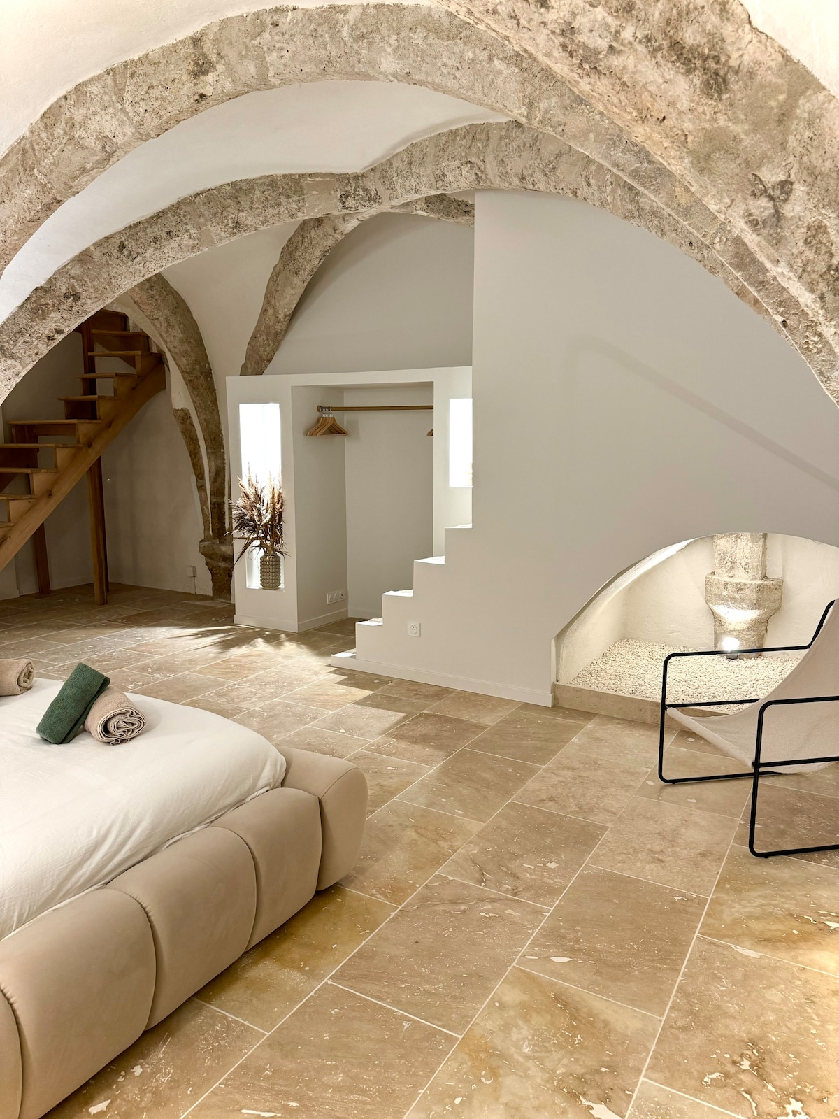 Velkommen til denne Perlen for et perfekt stopp og total frakobling! Utrustet og tilkoblet, vil du bli sjarmert av stedets varme og minerale atmosfære, med treaktige noter, for en koselig og industriell atmosfære. Jacuzzien med vann- og lysspill gir deg absolutt avslapning hele året. Prøv den sensoriske og unike opplevelsen, i en grotteatmosfære, av den tropiske dusjen, hvor stein, vann og vegetasjon forenes for en fortryllende følelse av velvære.