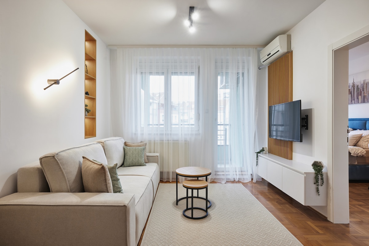>> Nyrenovert 45 m² leilighet med moderne innredning. >> Separat kjøkken, balkong og soverom for privatliv og komfort. >> Gratis og sikret parkering med praktisk rampeadkomst. >> Gratis ukentlig rengjøring for lengre opphold. >> Gangavstand unna kjøpesentrene Promenada og Mercator, SPENS sportssenter. >> Bare ti minutters gange til sentrum. >> Rolig, trygt nabolag.