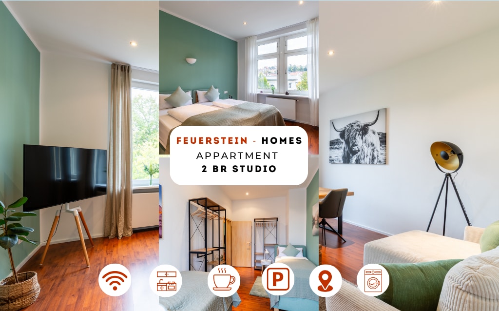 Huset vårt ligger i en bakke i et virkelig rolig boligområde. Den moderniserte røykfrie leiligheten har to soverom med kingsize-senger, en stue med en dagseng, et fullstendig oppusset bad og en ny stue med kjøkken. Gjestene våre er invitert til å bruke den store hagen - hagemøbler, en parasoll og en Weber-Grill er tilgjengelig. Vi reserverte en parkeringsplass rett foran huset vårt, spesielt for gjestene våre.