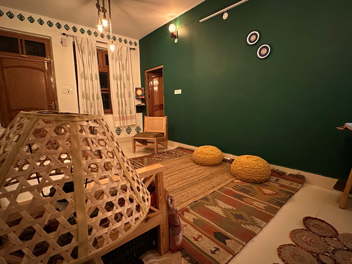 Ahmiyat ligger i de fredelige Himalaya-fjellene og er mer enn bare et opphold – det er en opplevelse av fred og nærvær. Denne jordnær, men elegant leilighet med utsikt over frodige daler og snødekte topper, blander enkelhet med varme. Et sted å ta en pause, puste og få kontakt med naturen i sin reneste form. Bare vær. Tilgjengelighet: 15 minutter – Dharamshala Mall Road og bussholdeplass 25 minutter – Gaggal lufthavn, Kangra 35 minutter – McLeodganj Mall Road