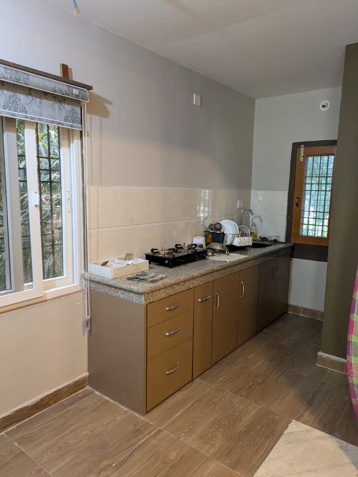 Leilighet i første etasje med en åpen terrasse med utsikt over parken. Du sover på et rolig soverom med to senger, pluss en sovesofa i stuen. Stedet passer komfortabelt for fire gjester. Vi er på NH37, hovedveien som går gjennom Kaziranga. Dette plasserer deg midt i handlingen uten kaoset ved å være i et overfylt turistområde. Vi arrangerer jungelsafari hvis du forteller oss det på forhånd. Bare gi oss beskjed om datoene og foretrukne soner, så tar vi oss av bestillingen.