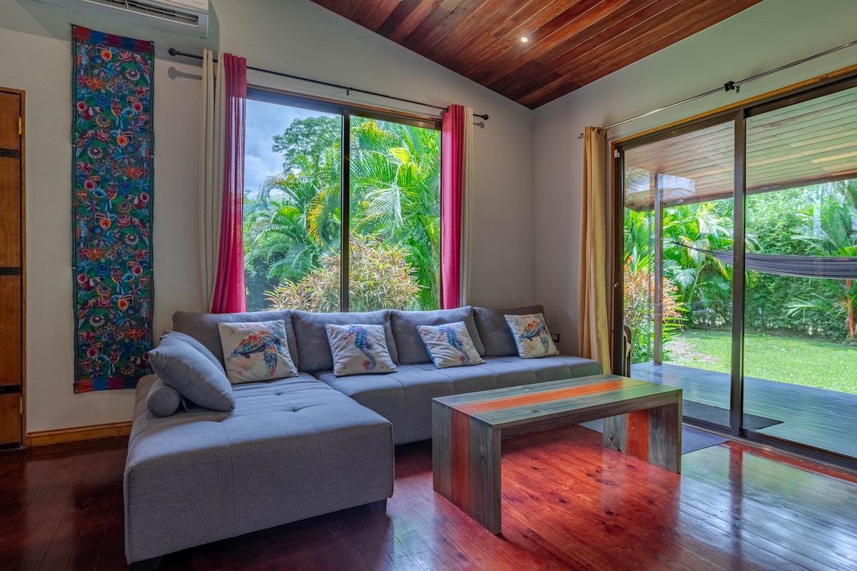 Villa med åpent konsept, utstyrt med alle hjemmets bekvemmeligheter, fullt utstyrt kjøkken, smart-TV, grill, basseng, trådløst nettverk og privat terrasse/bakgård. Avslutt en perfekt dag med å synke ned i den luksuriøse kingsize-sengen, begeistret av gjestene som den mest komfortable sengen i byen. INGEN besøkspolitikk og VENNLIGST ingen barn/nyfødte tillatt. Ingen FIREHJULSTREKK. Gangavstand til butikker, restauranter, banker, dagligvarebutikker, en kort kjøretur til Marino Ballena nasjonalpark og de vakreste strendene!