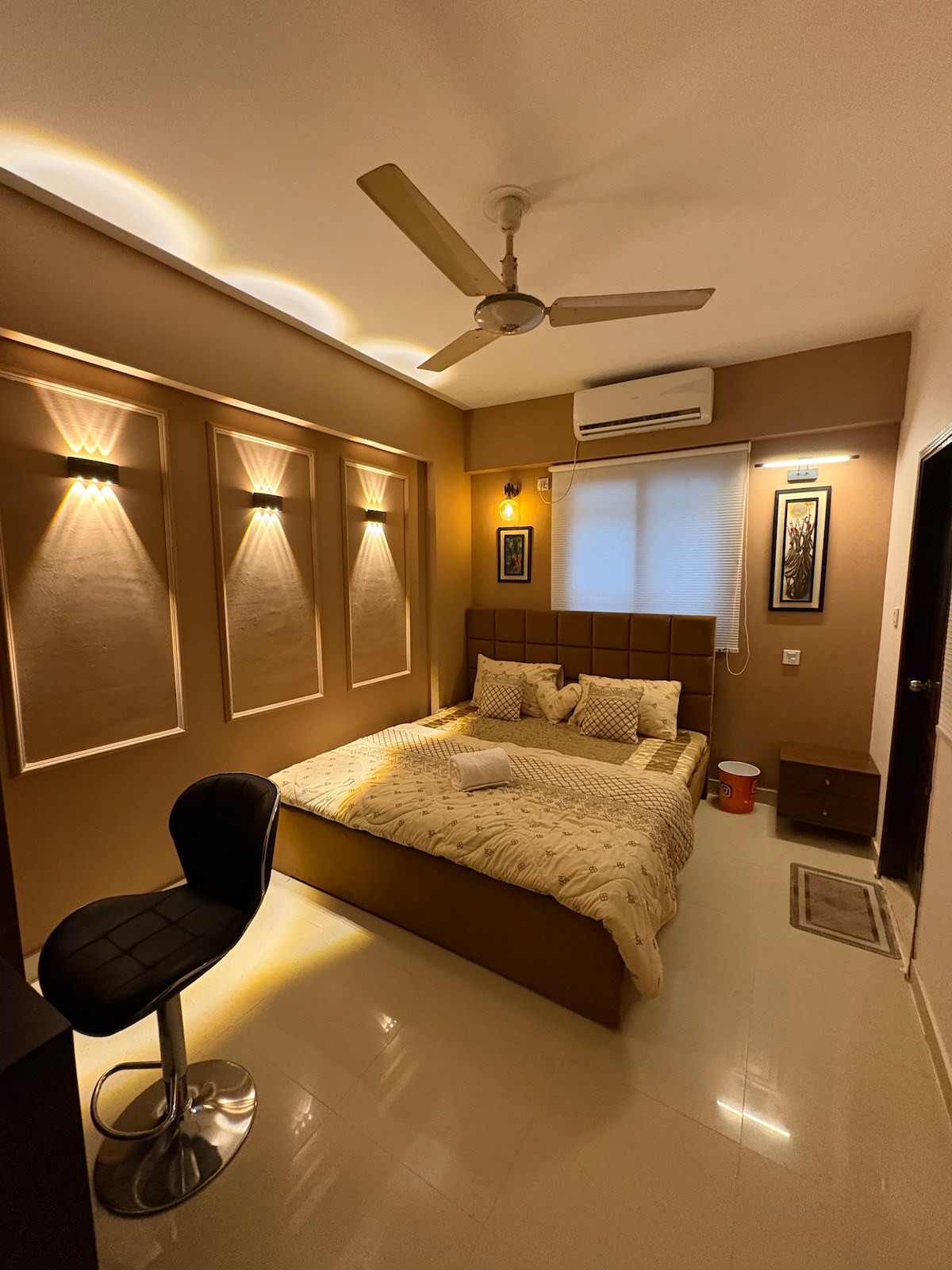 "Velkommen til ditt koselige tilfluktssted i Bahria Town Karachi" Et estetisk sted å bo for par ,venner og familie Tjenester: Netflix Amazon Forfriskning Kjøkkenutstyr Strøm ,gass,vann tilgjengelig døgnet rundt Tilleggstjenester med tilleggskostnader: 1:hushjelp 2:bil med sjåfør 3: Hjemmekokk 4:Servant for utendørsarbeid. Andre ting du bør merke deg vær oppmerksom på støynivået og avstå fra å spille musikk høyt for å sikre et fredelig miljø for alle. Nyt oppholdet ditt.