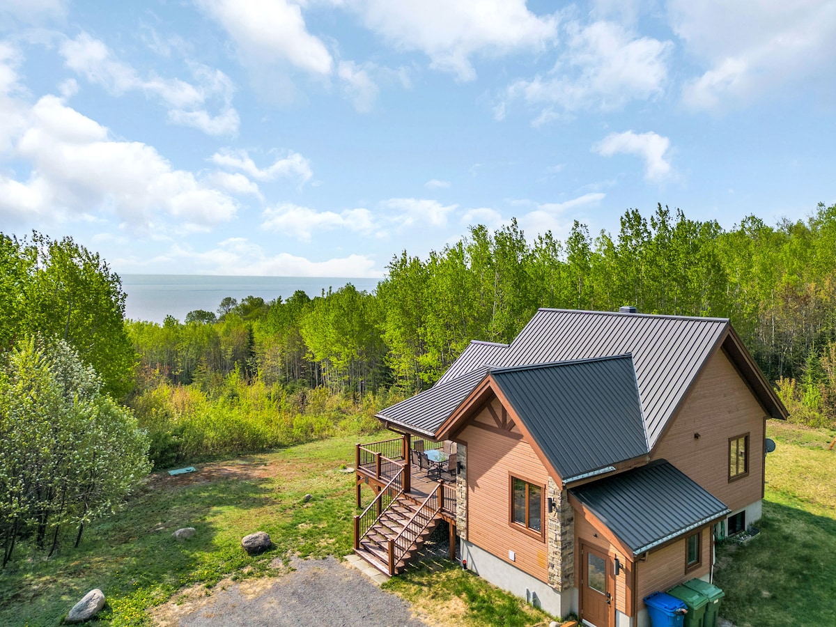 Denne alpehytten har fantastisk utsikt over elven St. Lawrence og Coude Islands, med et panorama som forvandles med årstidene. Enten du vil slappe av ved bålet om vinteren eller nyte sommerbrisen på terrassen, er dette stedet perfekt for all fritid. I tillegg er nærheten til Massif de Charlevoix, som ligger bare ti minutters gange eller to minutter med bil, og lar deg nyte varierte aktiviteter gjennom hele årstiden.