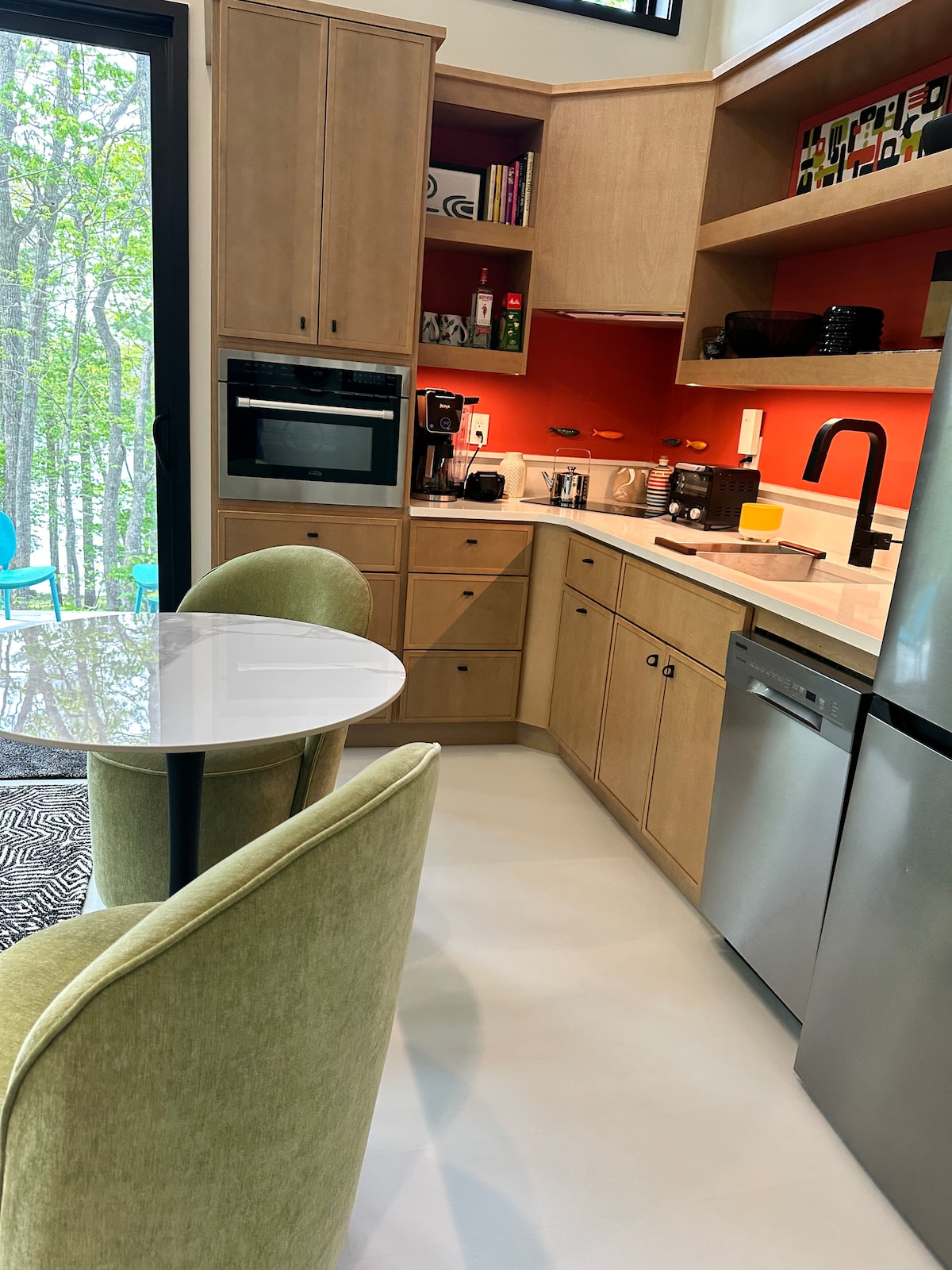 • Perfect for small families or couples, our signature A-Frame cabin features a modern interior gas burning fireplace, soaring ceilings, huge windows, stylish interiors, and all the comforts of home. • This cozy 1,100 square foot space comfortably accommodates up to four guests in two bedrooms (one with a King-size bed and the other with a Queen-size bed) and a shared bathroom. • 7 minute drive to downtown Freeport. • Proud to be ranked in the top 1% and voted Guest Favorite!