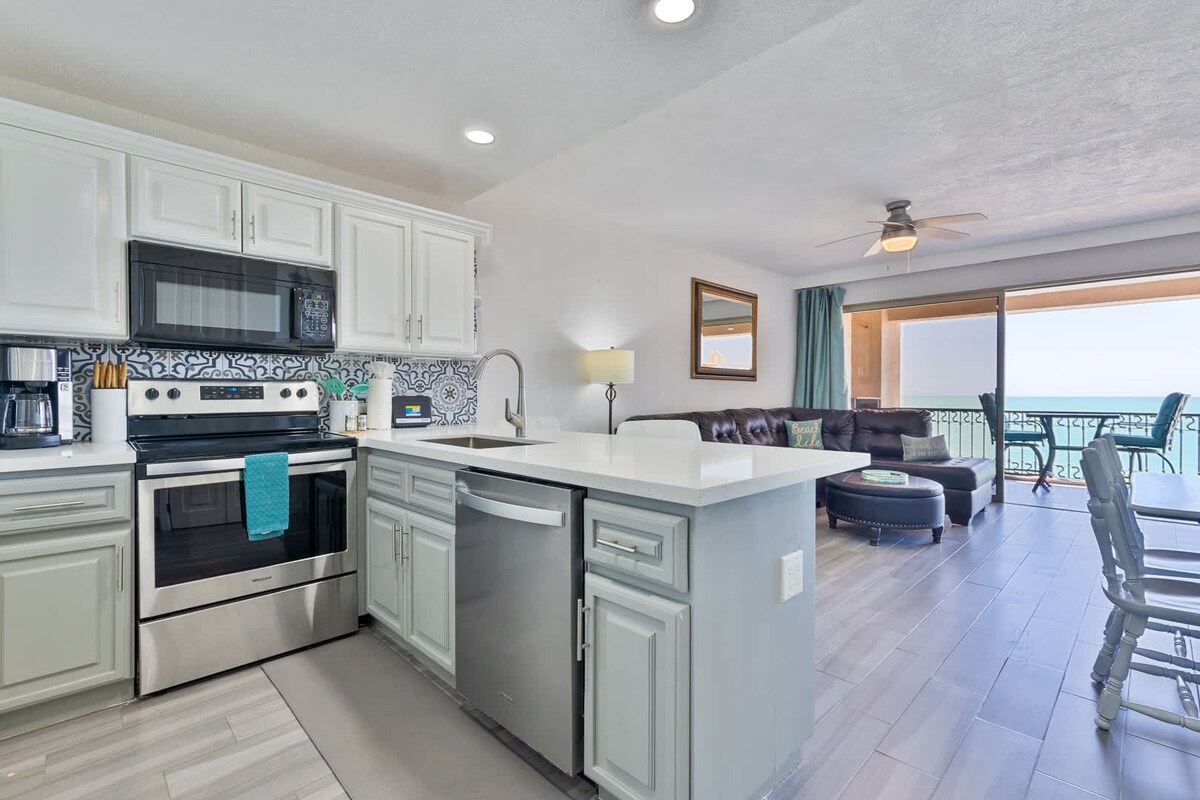 Villa La Estancia 1305 – Premium havutsikt. Plass til opptil seks personer komfortabelt med tre senger og tre fullt utstyrte bad. Denne nylig oppussede leiligheten med to soverom (én kingsize og to queensize) har fantastisk havutsikt. Nyt de femstjerners fasilitetene i Villa La Estancia, som ligger på den berømte Medano-stranden. Du har over 214 kvm innendørs/utendørs oppholdsrom til å slappe av. Nyt de åtte restaurantene på stedet, markedet, to vakre, overdimensjonerte bassenger, bassengbar, fem boblebad, bålplasser, pickleball og mye mer!