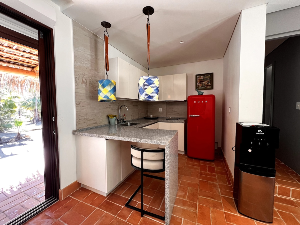 En blanding av moderne design og naturlig skjønnhet i meksikansk stil i den sentralt beliggende Casa El Teso med to soverom. Med takhøyde på 3,6 meter og ståldekkkonstruksjon er dette hjemmet både solidt og romslig. Store dører forbinder det luftige interiøret med terrassen med utsikt over øya på en sømløs måte. Den skyggefulle terrassen har boblebad, grill, komfortable møbler og spisebord. Inne er det raskt trådløst nettverk og en avsidesliggende arbeidsplass – perfekt for å jobbe fra paradiset. ;-)