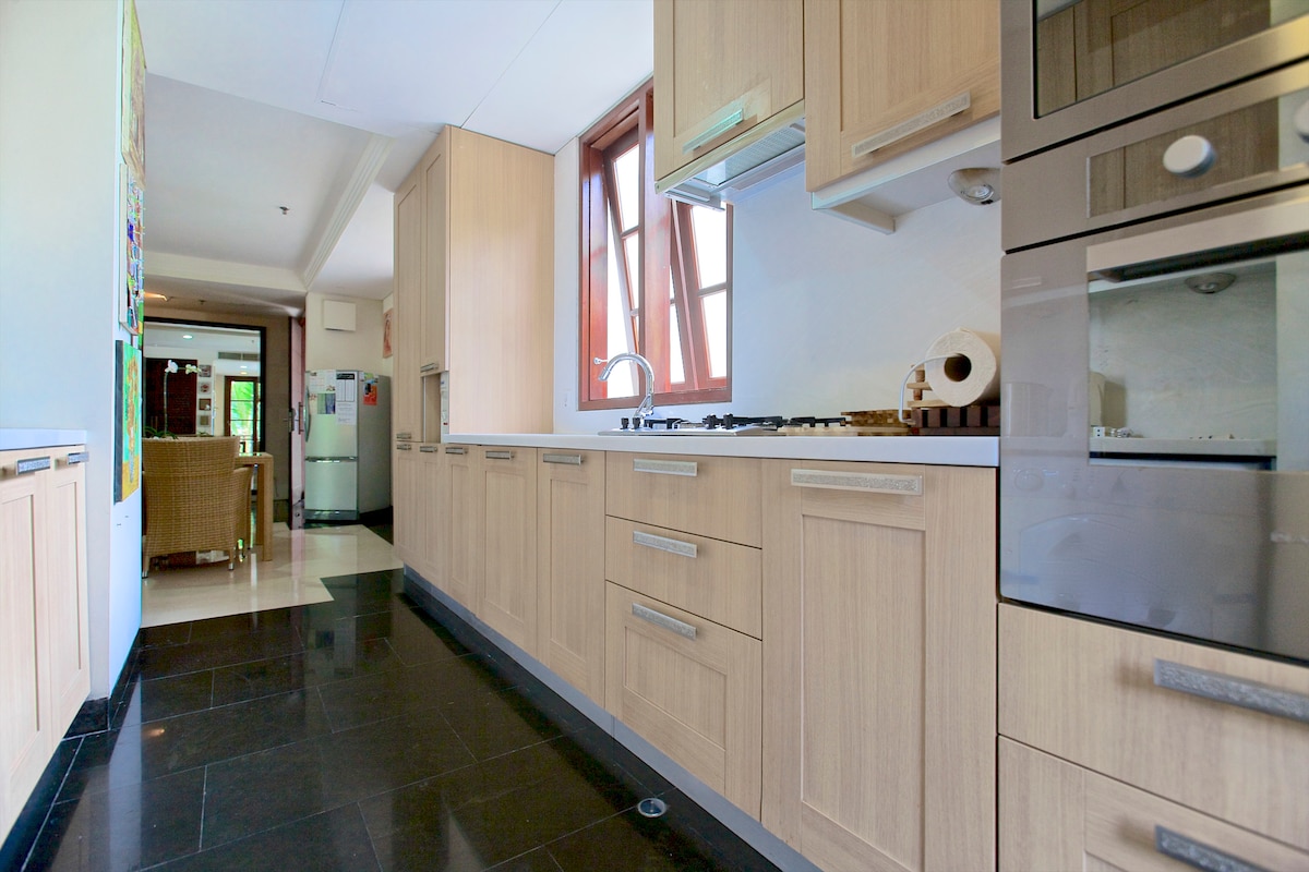 Vår leilighet inne og vedlikeholdes av Novotel Hotel Resort på Bali Nusa Dua ITDC Complex. Denne boligen er på 150 kvadratmeter i tredje etasje med to soverom og to bad. Hovedsoverommet er forbundet med et romslig, privat bad og har en balkong som vender mot hovedhagen. Vi tilbyr ekstra seng og sovesofa for ekstra familie gjester. Hotellet støtter Covid-19-helseprotokollen for alle gjester og rengjør alle rom med desinfeksjonsmiddel før gjestene sjekker inn og etter at gjestene sjekker ut.