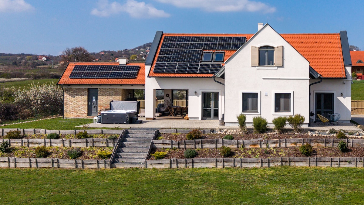 Csipetnyi Chill Guesthouse er en ekte luksusopplevelse i omfavnelsen av naturen, hvor det stilige interiøret og moderne bekvemmeligheter skaper den perfekte harmonien. Gjestehuset er et ideelt valg for par, vennegjenger eller til og med mindre familier som ønsker å slappe av under førsteklasses forhold – selv året rundt. Viktige funksjoner: Tre separate soverom To bad. To utstyrte kjøkken Privat velværeområde med boblebad og badstue Vakker panoramautsikt over Balatonsjøen