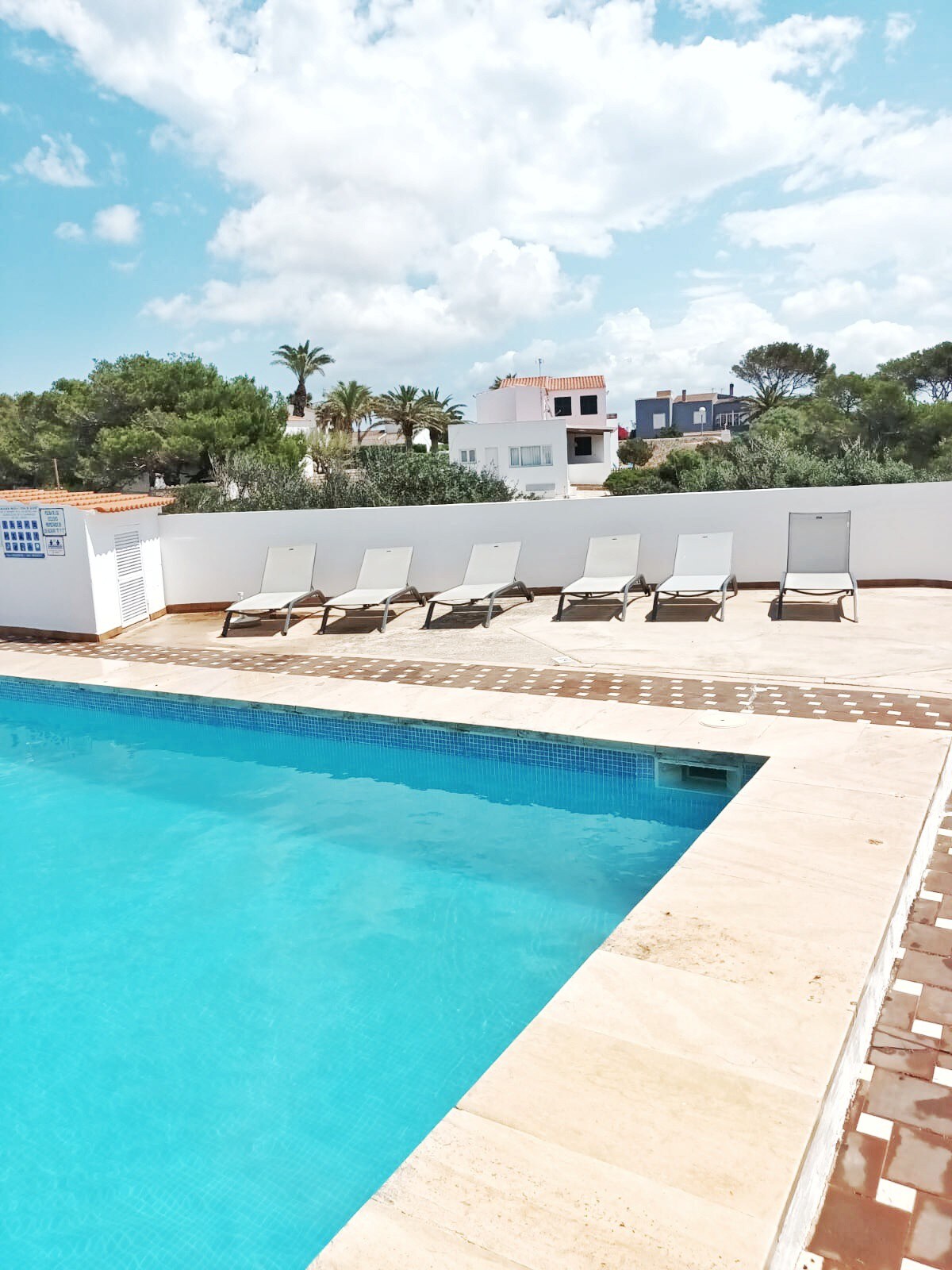Apartamento luminoso, amplio y tranquilo, con salida directa a la playa de cala'n Forcat. Dispone de piscina comunitaria y zona ajardinada, para relajarse. Consta de dos habitaciones, equipadas con ventiladores de techo silenciosos para el descanso, un lavabo, comedor-cocina y una terraza donde poder comer y cenar relajadamente. Cerca de todos los servicios, restaurantes, supermercados y autobuses y playas. Consta de todo lo necesario para pasar unas magníficas vacaciones.