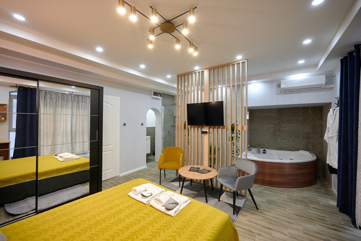 VANIMI Deluxe Suite 5 er gjennomtenkt designet for å gi deg en kreativ avslapningsopplevelse. Denne enheten er utstyrt med sauna og jacuzzi - nyt varmen i saunaen eller dykk ned i boblebadet og nyt øyeblikk av ren avslapning. Nyt en spasertur gjennom Kikind Square og oppdag den vakre kirken St. Nicholas. Besøk Nasjonalmuseet der du vil bli kjent med Kike mammutskjelett. Utforsk også Terra Museum, hjemsted for unike keramiske figurer som er et symbol på Kikinda.