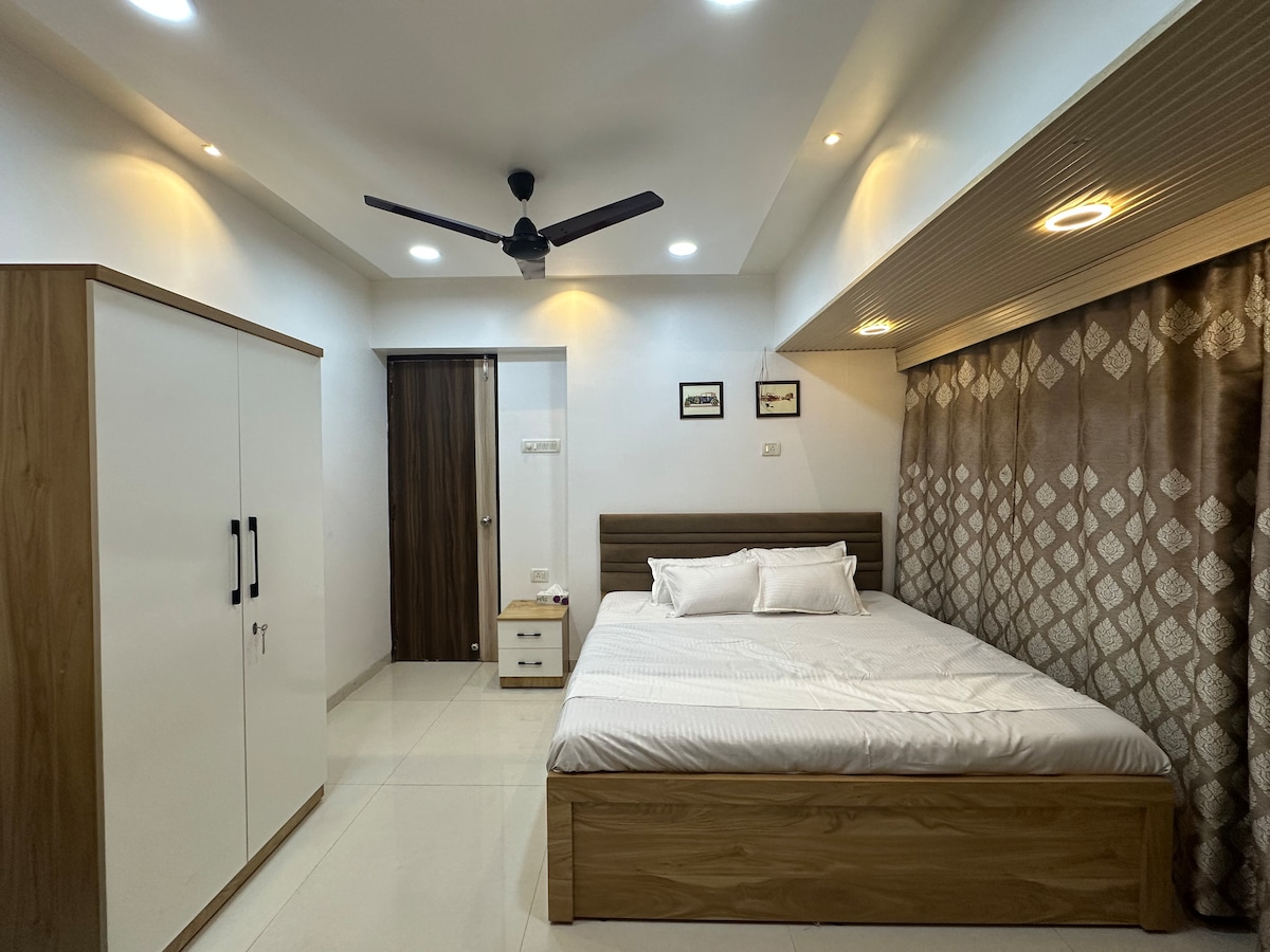Velkommen til ditt moderne dag - chic 1-roms leilighet i nærheten av BKC! Med sin minimalistiske design, rikelig med arbeidsplass, underholdningsalternativer og viktige fasiliteter, imøtekommer det behovene til både forretnings- og fritidsreisende! Funksjoner: ★ Stort skrivebord. ★ Trådløst nettverk med høy hastighet uten ekstra kostnad ★ Smart TV ★ Tata Sky med alle HD-kanaler ★ Lydbar ★ Mikrobølgeovn/kjøleskap ★ Air Fryer ★ Luftrenser ★ Vannrenser Bestill nå og opplev den perfekte blandingen av modernitet og komfort!