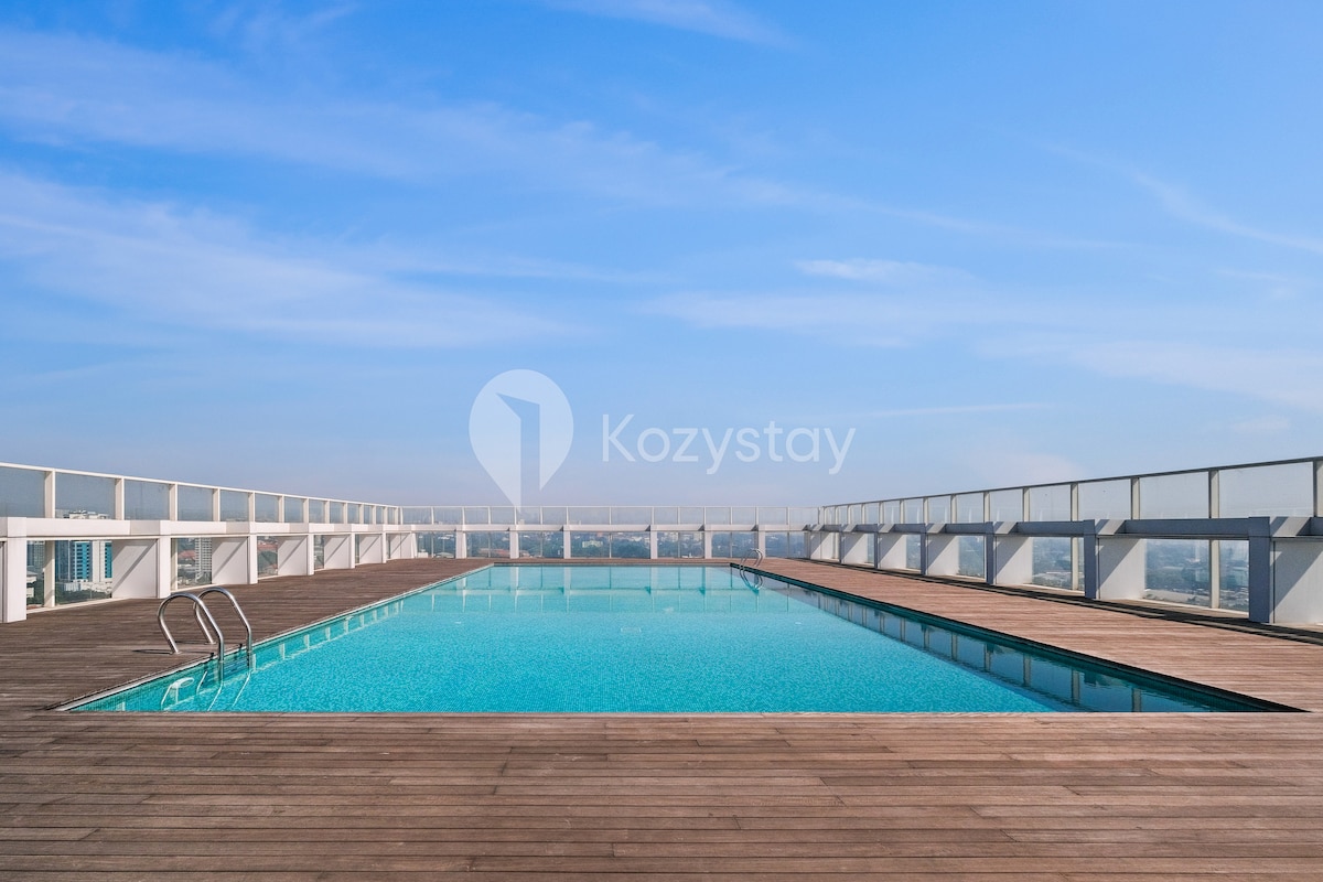 Profesjonelt administrert av Kozystay Velkommen til den koselige 2BR-leiligheten vår i Bandungs forretningssenter. Moderne interiør, et praktisk kjøkken og et klesvask venter deg. Slapp av ved utendørsbassenget med fjellutsikt, hold deg i treningsstudioet og slapp av i badstuen. Ideelt for et balansert opphold - arbeid, fritid og avslapning. TILGJENGELIG FOR GJESTER: + Digital innsjekking + Profesjonelt rengjort (desinfiser) + Hotellklasse Fasiliteter og frisk sengetøy + Gratis høyhastighets Wi-Fi + gratis tilgang til Netflix og Disney+