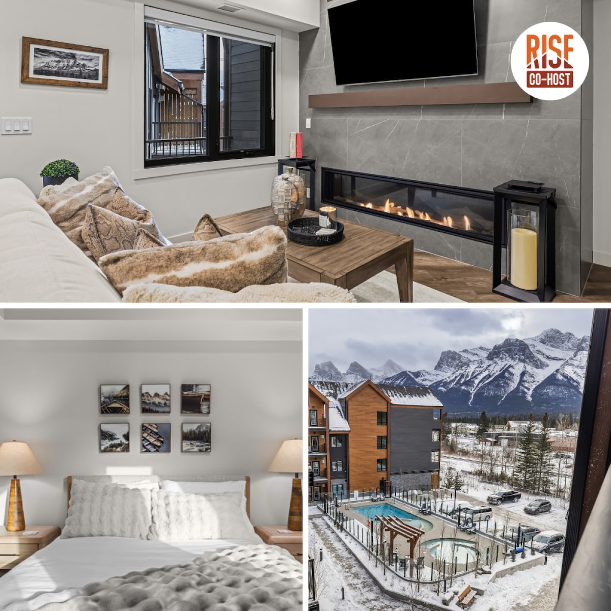 ⭐️⭐️⭐️⭐️⭐️ ☎️ Vertstilgjengelighet døgnet rundt. 🛜 Trådløst nettverk, Disney+, Netflix, Crave. 🧹 Profesjonelle renholdsarbeidere med 60 poeng sjekkliste. 🏠 Fjellutsikt, delt boblebad og basseng, treningsstudio, privat balkong, grill, vaskerom, undergrunnsparkering. 💰 Eksklusive gjestefordeler: rabatter på restauranter, spa, turer og annet. ! Bestill datoene dine før de er borte! ⭐️⭐️⭐️⭐️⭐️
